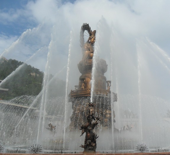到達威海石島赤山風景區,為了防止人員走散或發生安全問題,旅行社為每人都準備了一頂紅色的旅行帽,我們依次參觀了赤山明神、榮成民俗館、韓國民族英雄、海上貿易家張保皋生平壯舉的張保皋傳記館,下午兩點來到亞洲*大規模的觀音動感音樂廣場-極樂菩薩界,隨著音樂開始表演,此情此景,讓大家無不震撼。大家看到這么美好的景觀,都顯現出了很高的積極性。