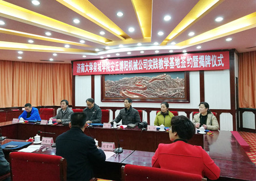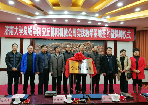 2016年12月30日,濟南大學(xué)泉城學(xué)院與安丘博陽機械公司實踐教學(xué)基地掛牌儀式隆重舉行。泉城學(xué)院劉增夕副院長、安丘博陽機械閆吉祥總經(jīng)理、