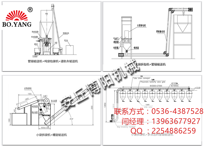 【噸袋拆包機】配套【管鏈輸送機】組成拆包輸送線 詳