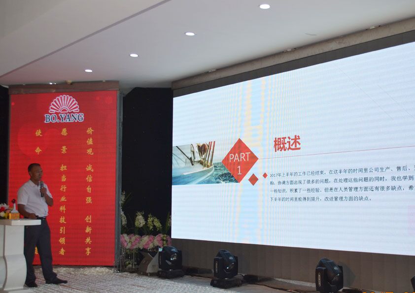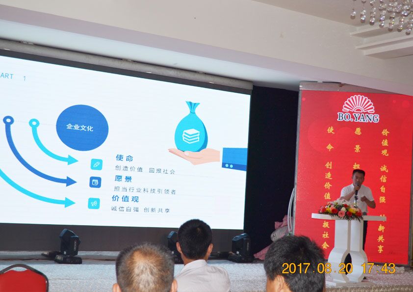 2017年8月20日下午,安丘博陽機械制造有限公司2017年度年中總結會議暨下半年目標達成動員大會在安丘匯泉酒店召開。總經理閆吉祥,副總