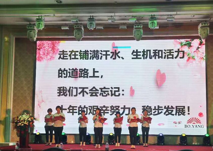 時光荏苒、歲月如梭,在時間的長河里,十年只是滄海一粟,但對安丘博陽機械來說,有迷茫,有辛酸,有成長,有輝煌。在十年的奮斗中,我們懂了堅持和夢想,我們收獲了成長和進步。十年,是終點,也是起點。我們為過去的十年劃上句話,為新一個十年點上冒號,我們張燈結彩歡慶十年,齊心協力共譜新篇!