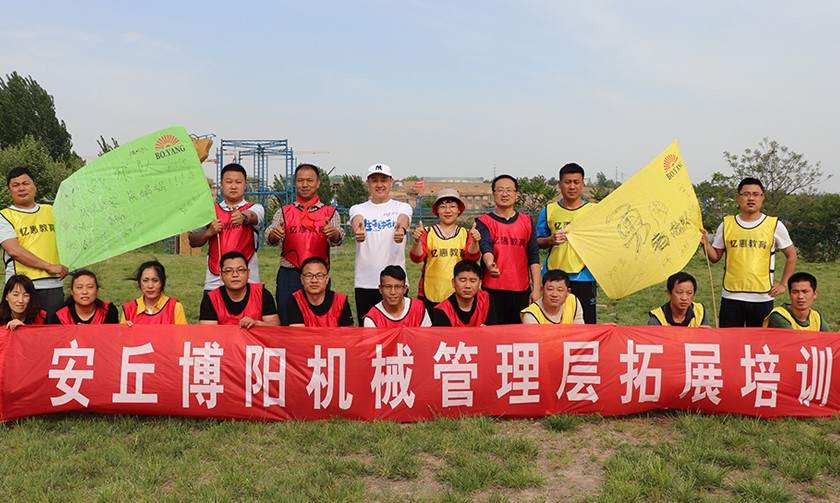 為了加強員工團隊意識,提高工作的熱情,打造新型的博陽企業文化,2019年5月4日,五四青年節這一天,博陽機械組織管理層在齊魯酒地開展為期一天的拓展培訓,管理層中共有20名同事參加。此次活動得到了公司領導的重視和支持,部分領導如孫總、岳總、李總等全程參加了培訓。