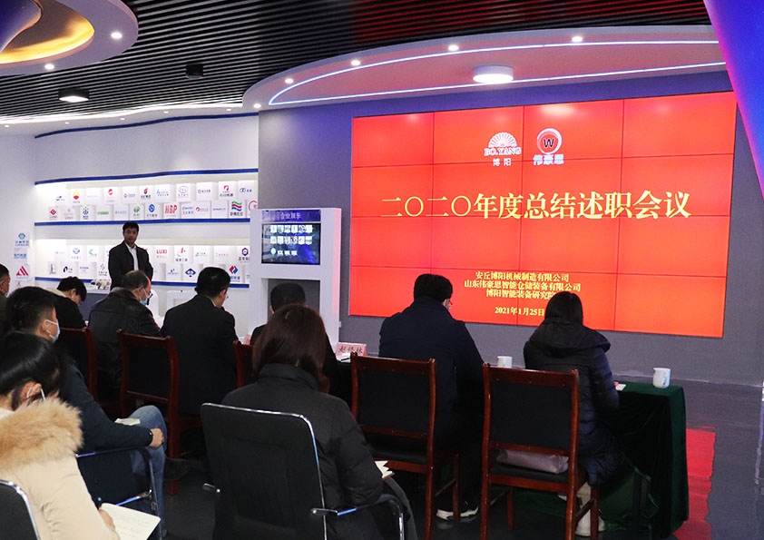 2021年1月25日下午,博陽機械2020年度工作總結會在公司企業展廳內召開,公司副總李文明、孫紅金,偉豪思總經理郭偉、研究院院長趙修林