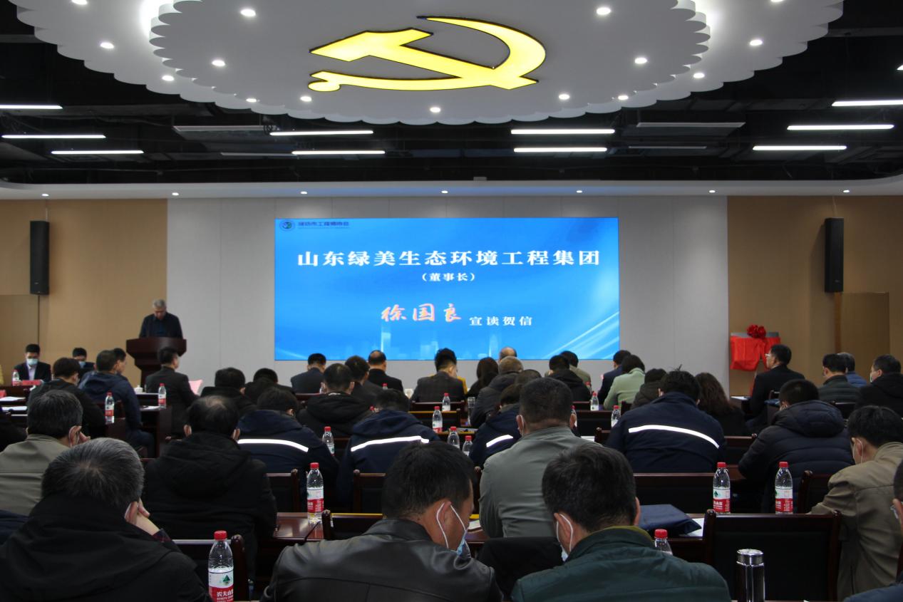 會(huì)議第*階第四項(xiàng):美晨生態(tài)集團(tuán)董事長(zhǎng)徐國(guó)良代為宣讀山東省發(fā)明協(xié)會(huì)賀信