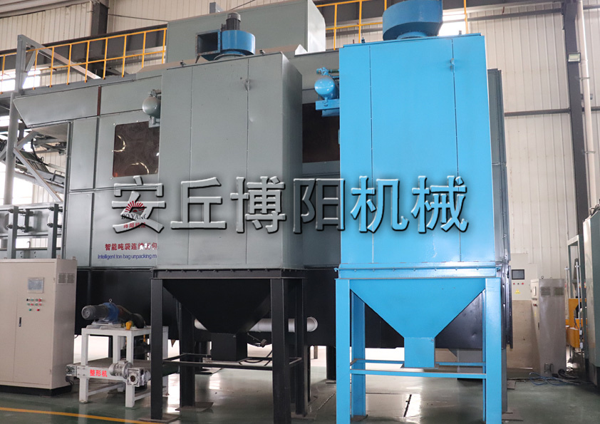 復合肥智能噸袋拆包設備 噸袋連續式拆包機車間圖