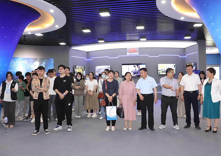 2023年5月23日上午,由安丘市人社局與濰坊學院學生處共同舉辦的大學生“就業大巴體驗行”活動在我公司舉行,安丘市人社局相關領導以及濰坊學院師生等40余人到公司企業展廳、產品線進行了參觀,并在會議室進行了友好熱烈的交談。