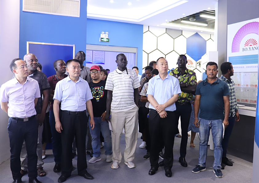 2023年6月27日,農業農村部副處級干部陳治宇、濰坊國家農綜區推進辦副主任李秀明帶隊巴拿馬、津巴布韋、蒙古國、 南蘇丹、尼泊爾、薩摩亞、埃塞俄比亞,20名專家、官員組成的“發展中國家現代畜牧養殖與加工技術培訓班”,在安丘市農產品質量安全管理服務中心主任劉炳剛、市農業農村局黨組書記、局長莊平等領導的陪同下到博陽機械進行考察。