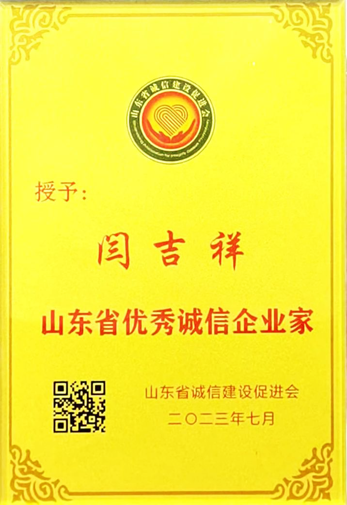 2023年8月10日,全省企業誠信建設工作會議暨山東省誠信企業、優秀誠信企業家等授牌儀式在煙臺舉行,會議表彰了全省88家誠信企業、80名