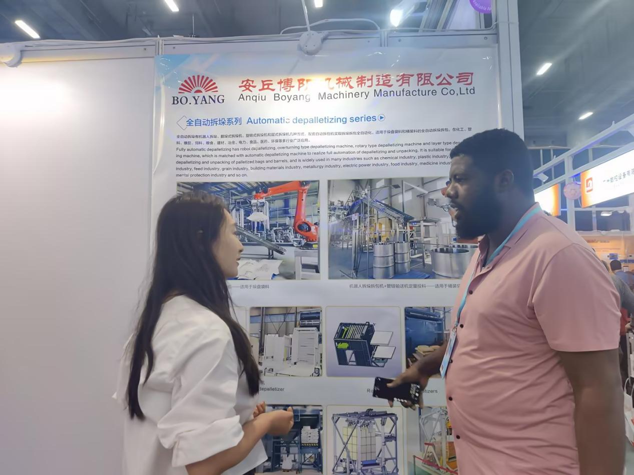 其中一位馬來西亞籍客戶非常認可展出的全自動裝車機,在對產品進行了全面、詳細了解后,感到“豁然開朗”,真是“踏破鐵鞋無覓處,得來全不費工夫”,他表示博陽公司產品解決了他多年的設備采購難題。目前,已現場達成合作意向500多萬美元。