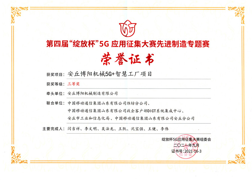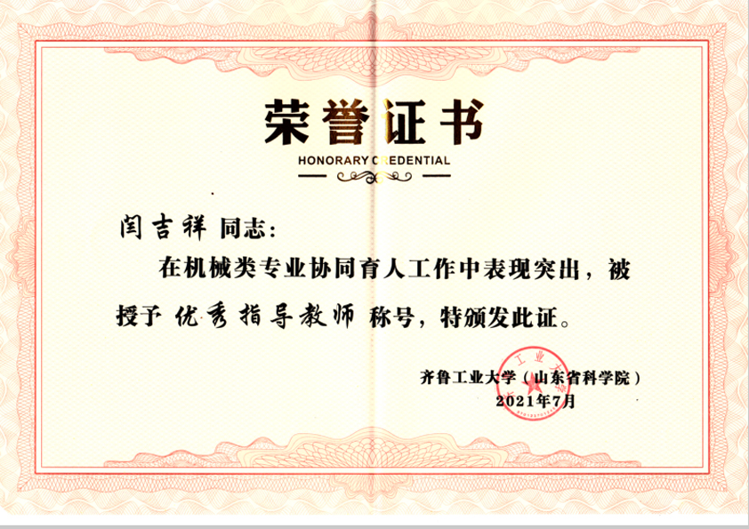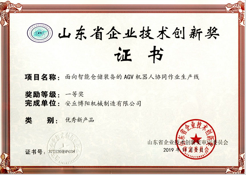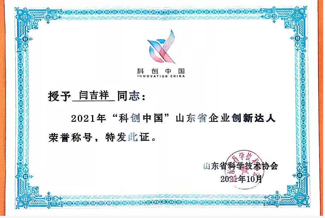山東省企業(yè)技術(shù)創(chuàng)新獎證書